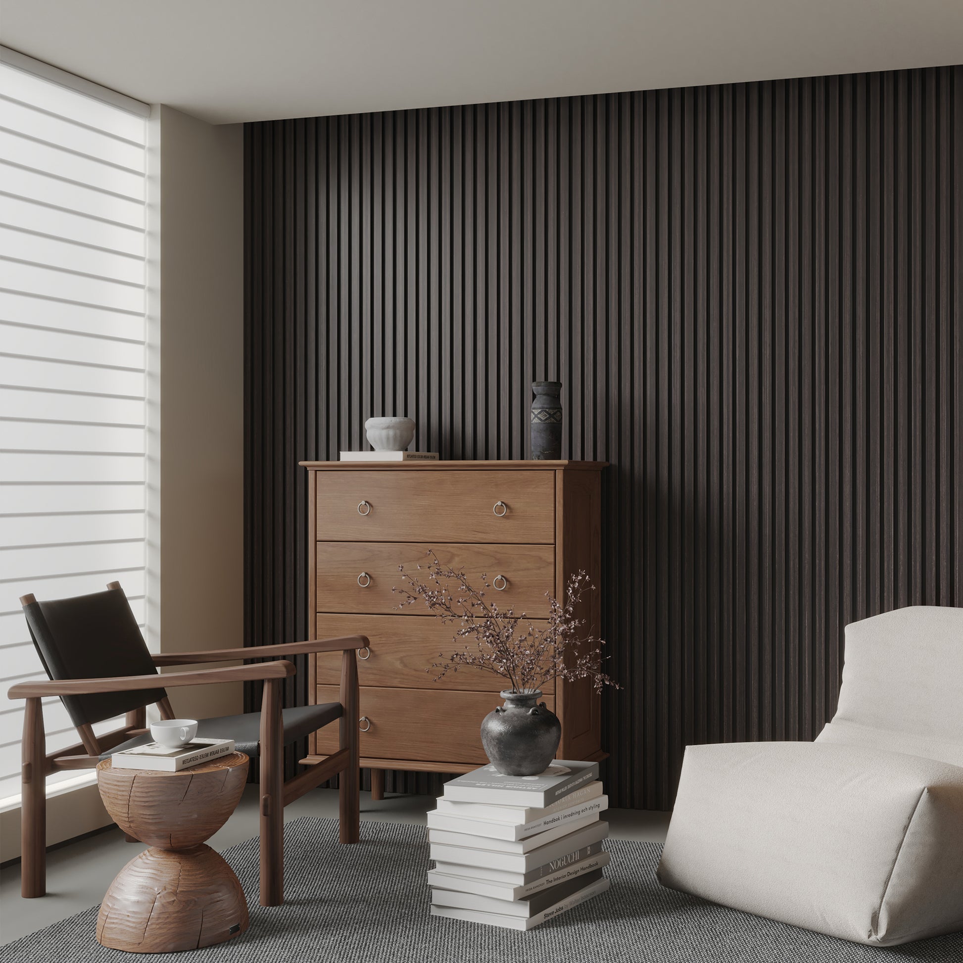 Acoustic Slat Wood Wall Panel - Smoked Walnut & Black Felt