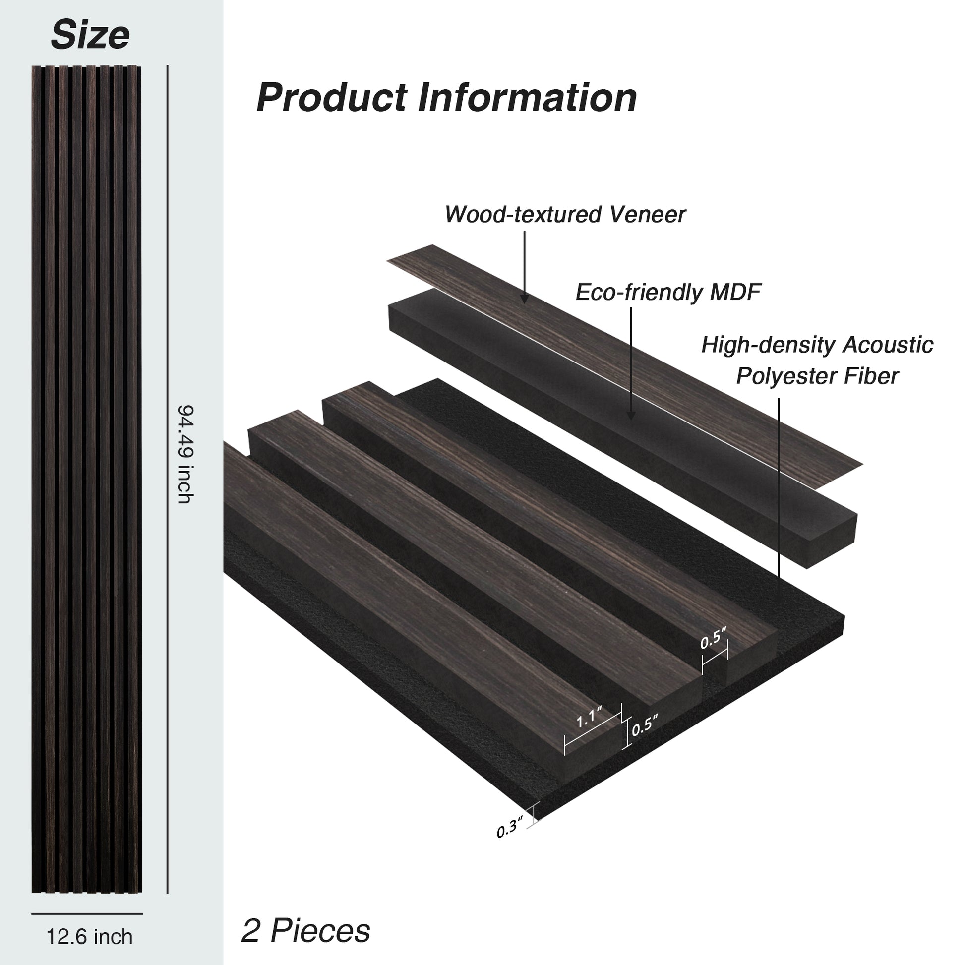 Each box contains two panels measuring H 94.49" x W 12.60" or H 47.24” x W 12.60”.
