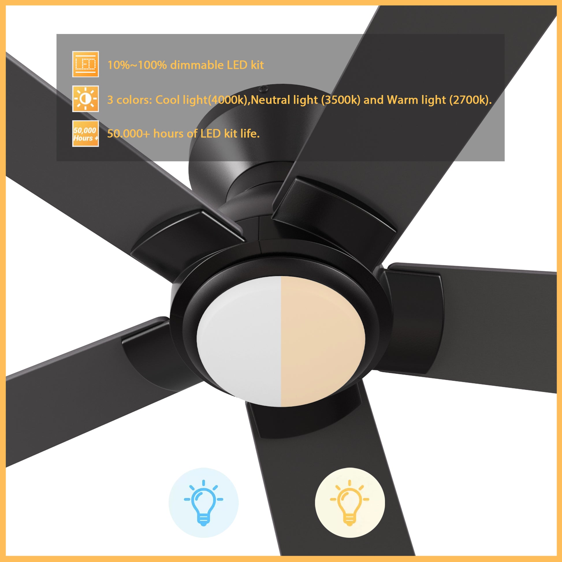 - Includes integrated 50,000+ hours LED light kit with warm light and cool light, it offers lower energy consumption and a longer life span.