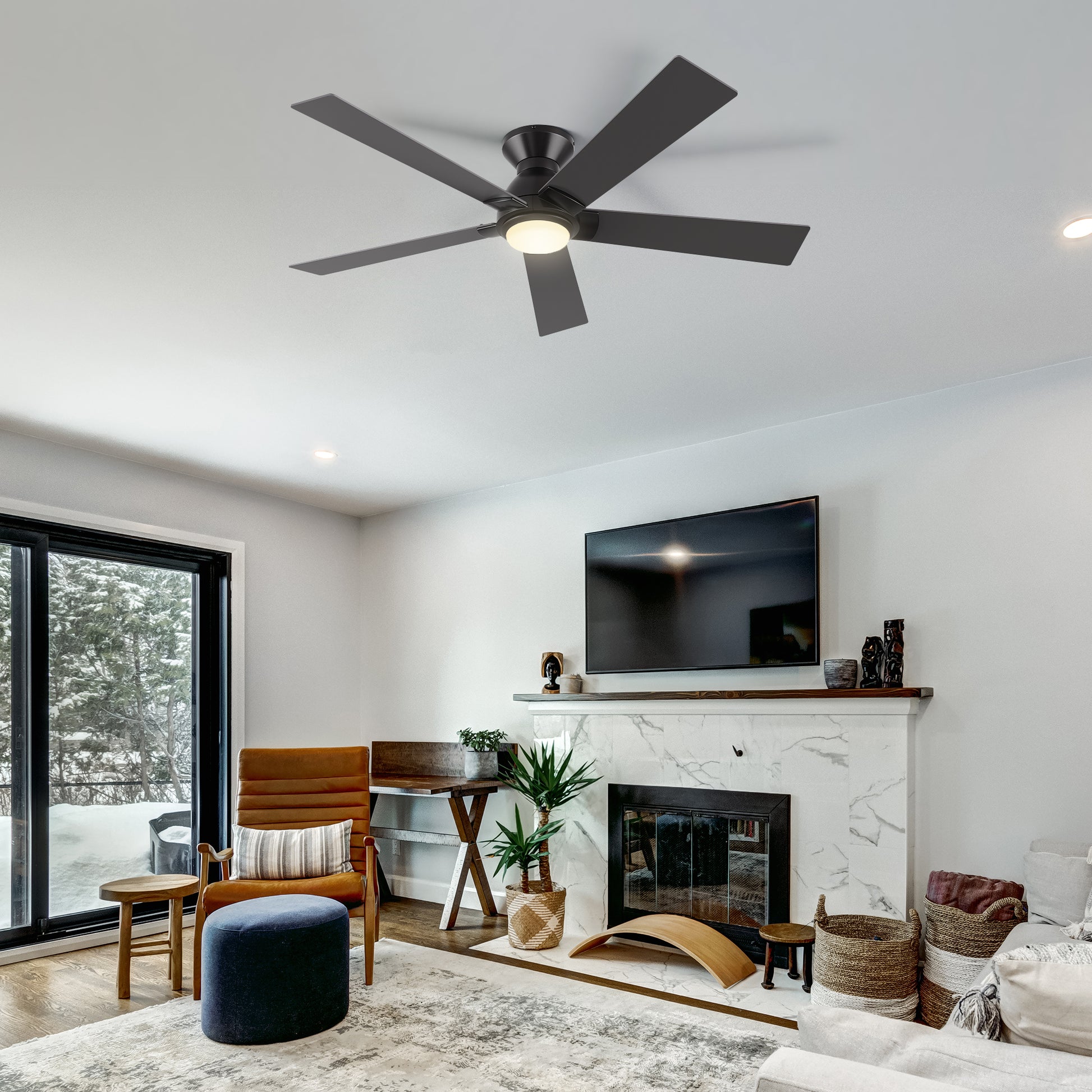 ASCENDER 52 inch 5-Blade Flush Mount Smart Ceiling Fan with LED Light & Remote