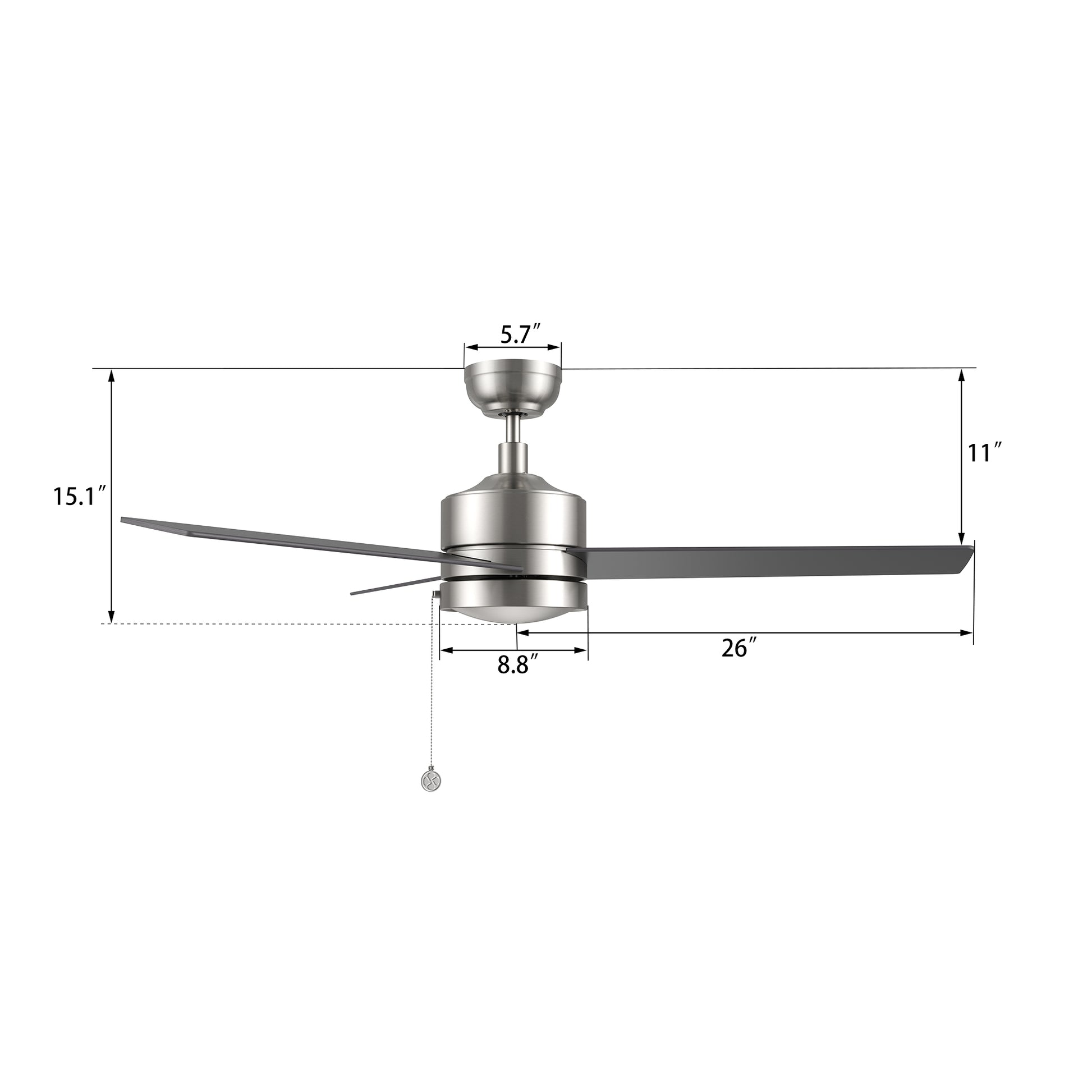 ASCOTT 52 inch 3-Blade No Light Ceiling Fan with Pull Chain