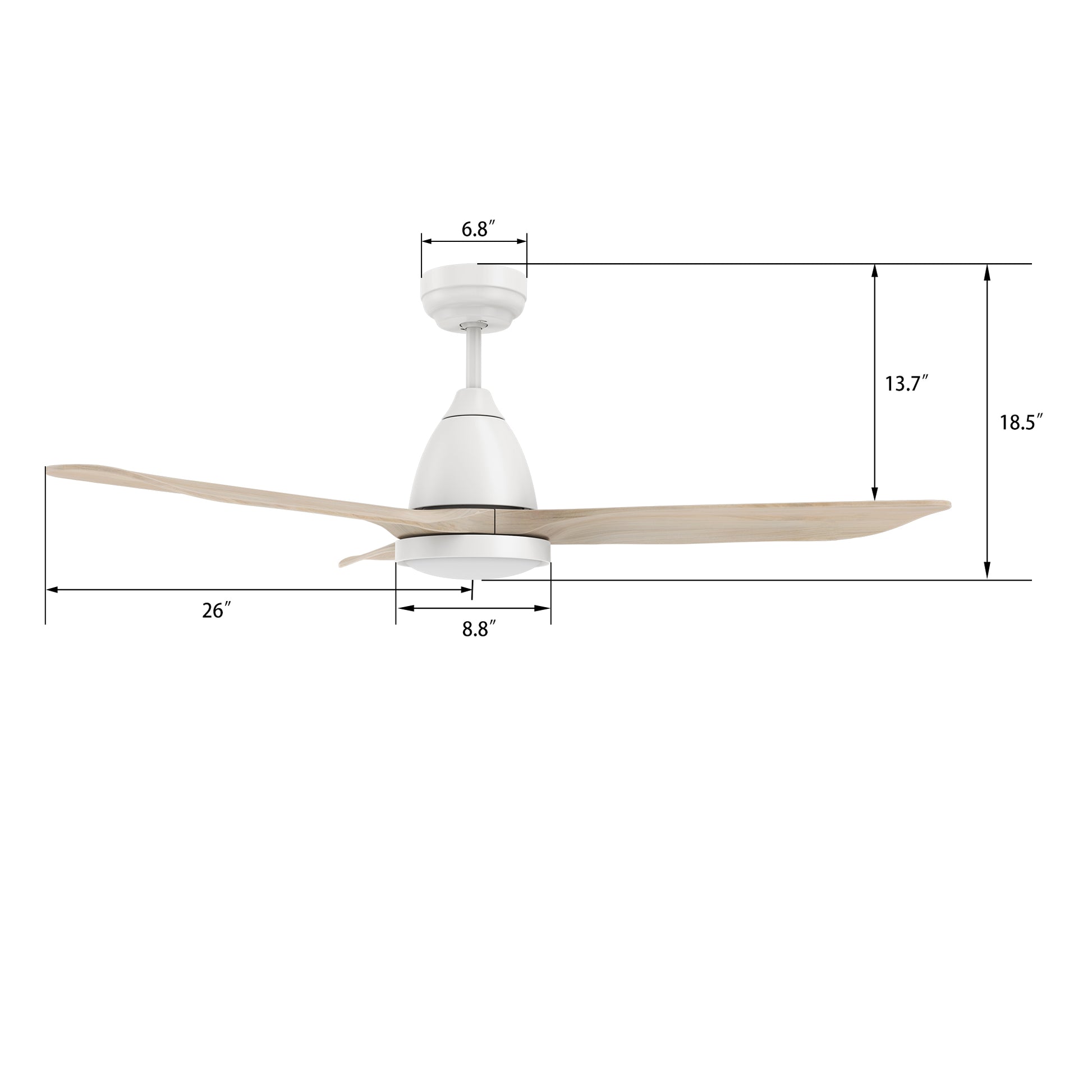 - 3 Solid Wood Fan blades.