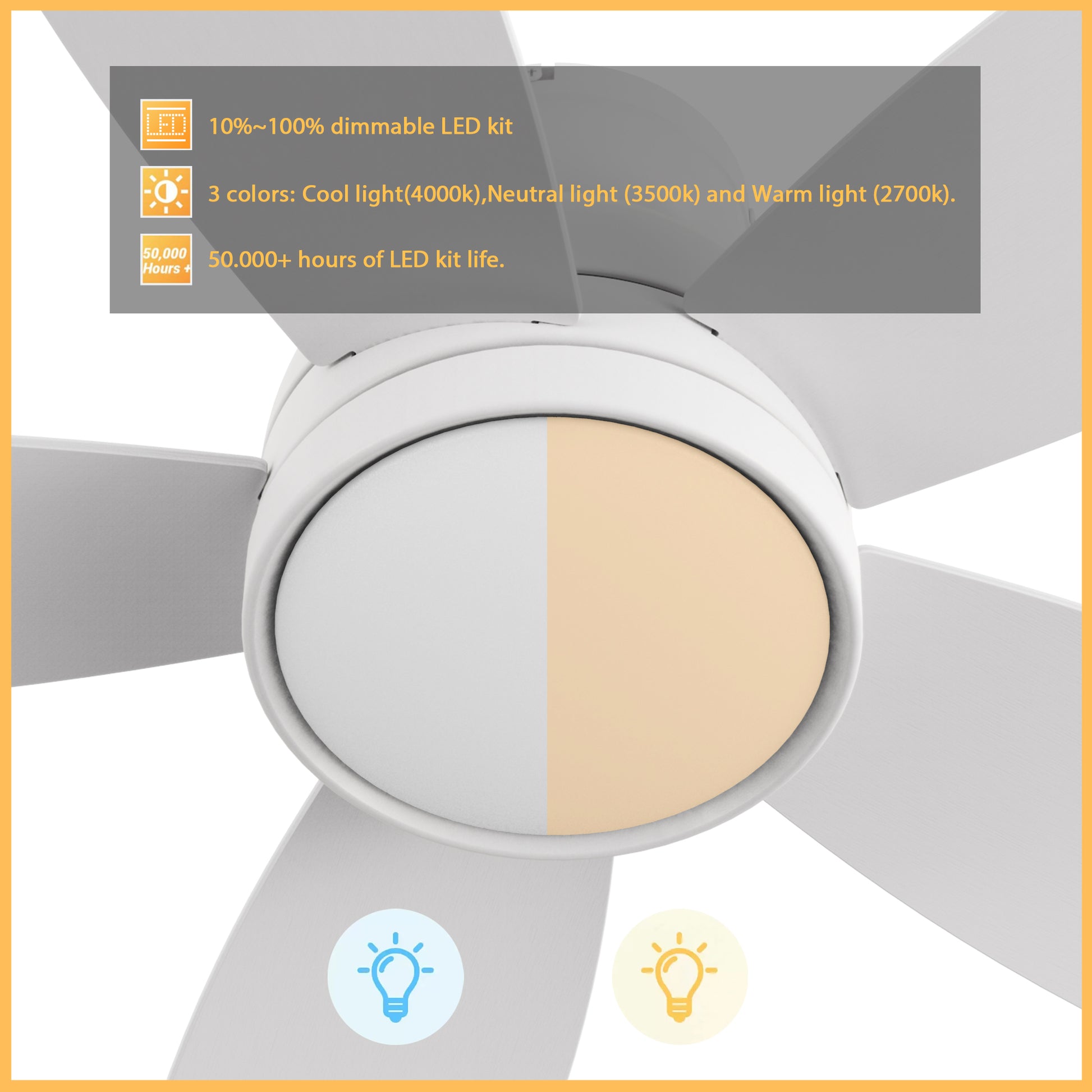 - Includes integrated LED light kit with warm light and cool light, it offers lower energy consumption and a longer life span