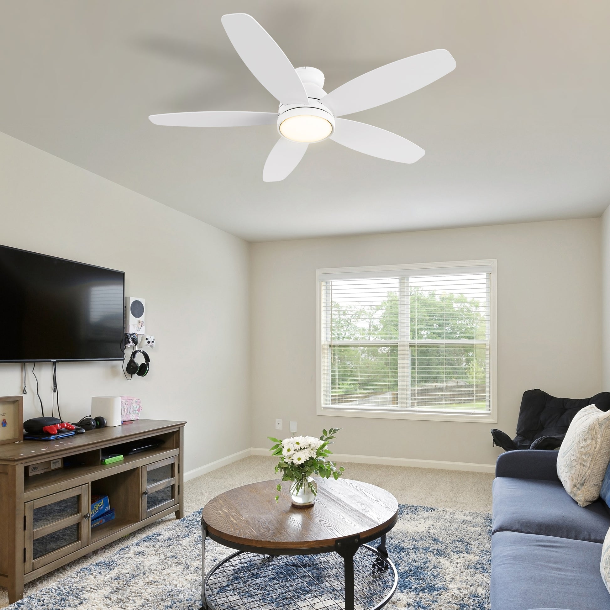 FREMONT 48 inch 5-Blade Flush Mount Smart Ceiling Fan with LED Light & Remote