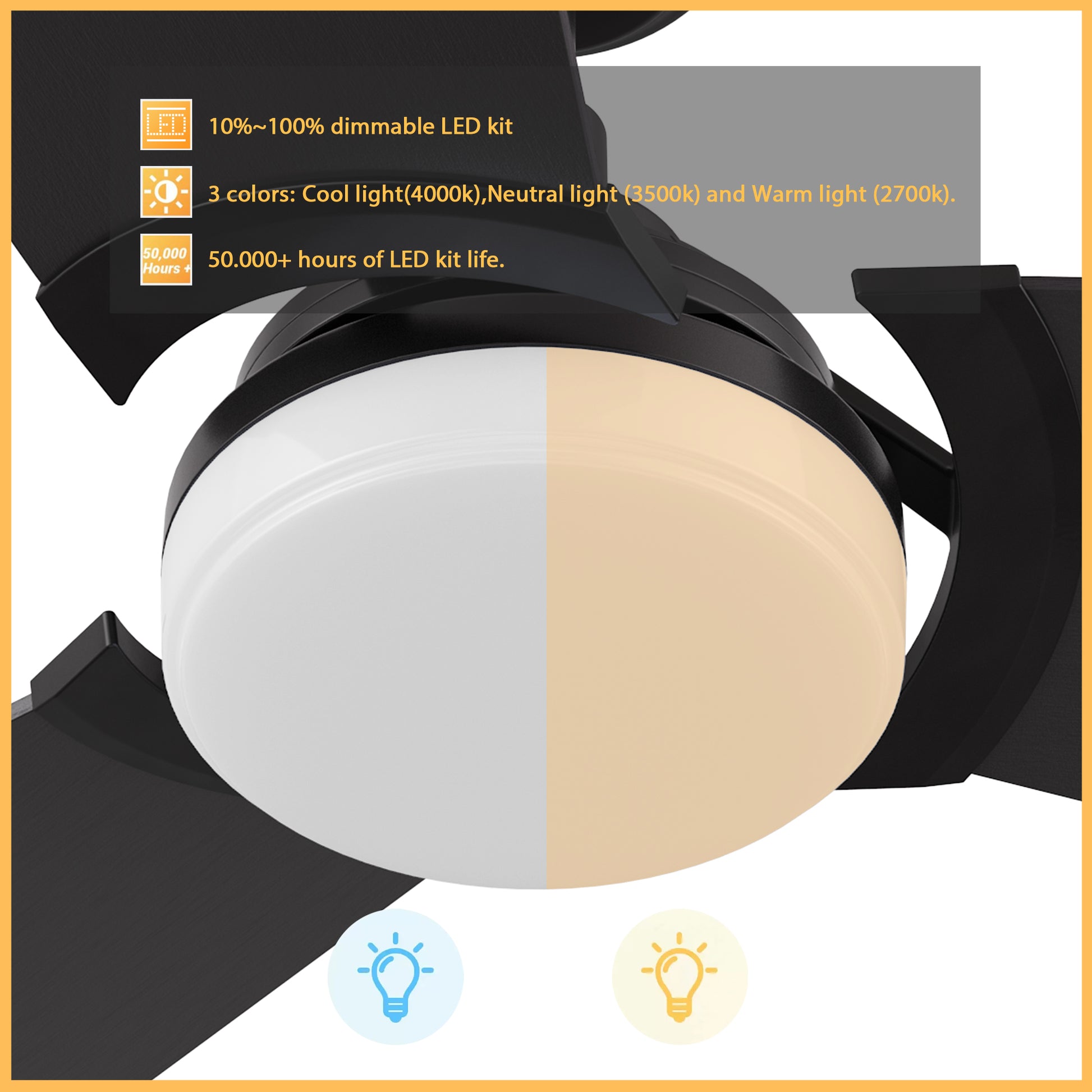 KAJ 52 inch 3-Blade Smart Ceiling Fan with LED Light & Remote