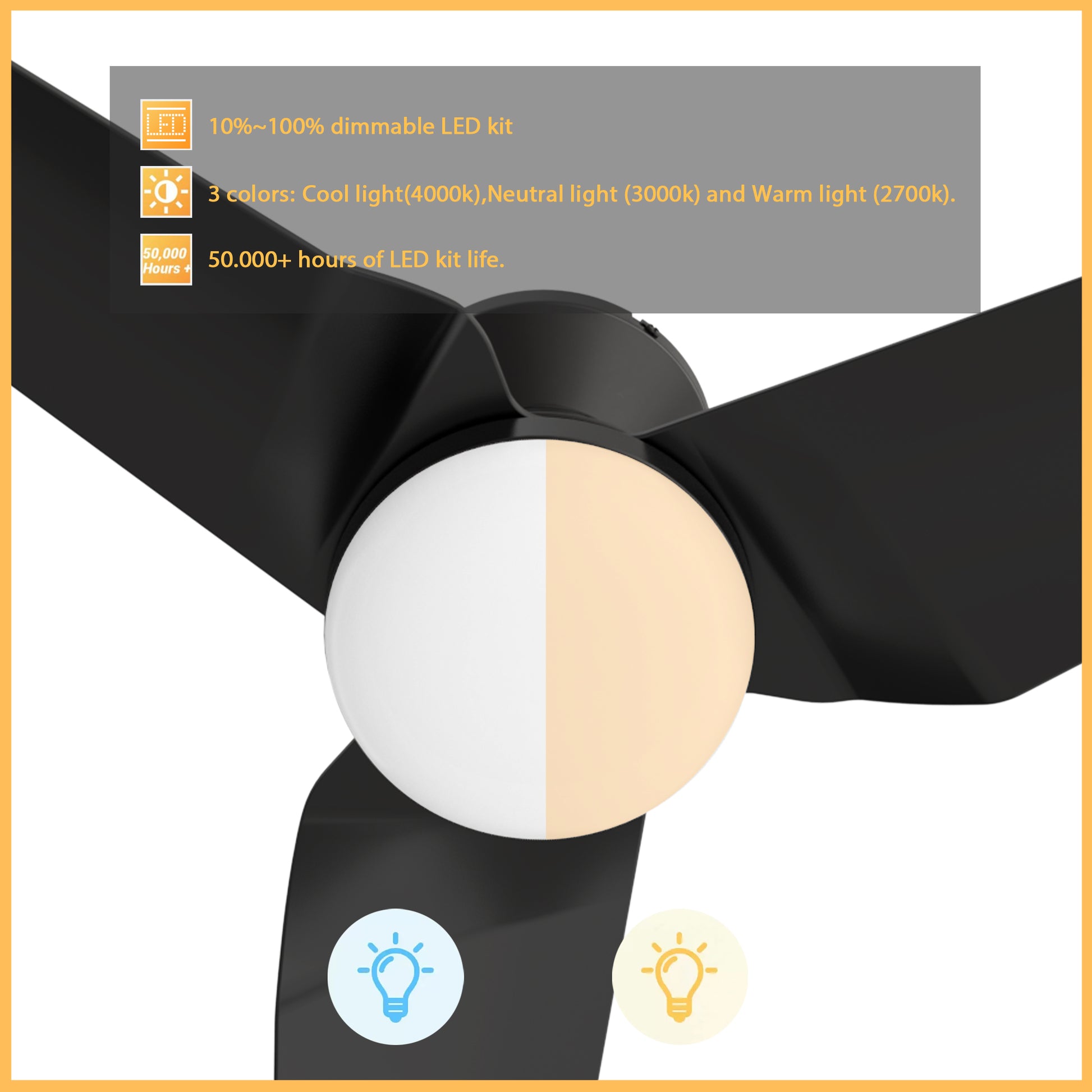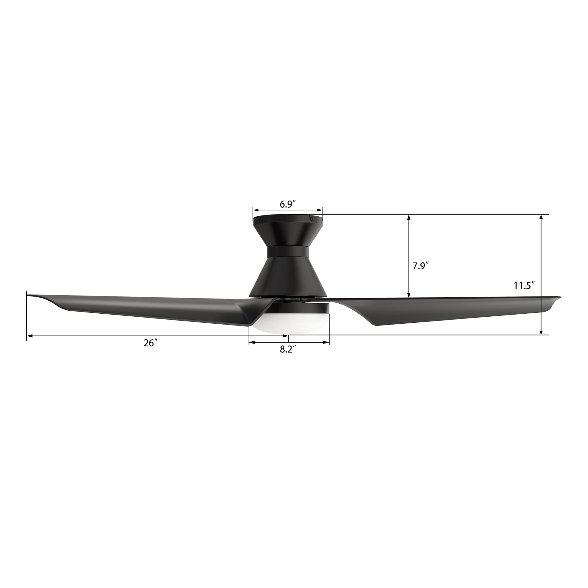 KREIS 52 inch Flush Mount 3-Blade Smart Ceiling Fan with LED Light & Remote