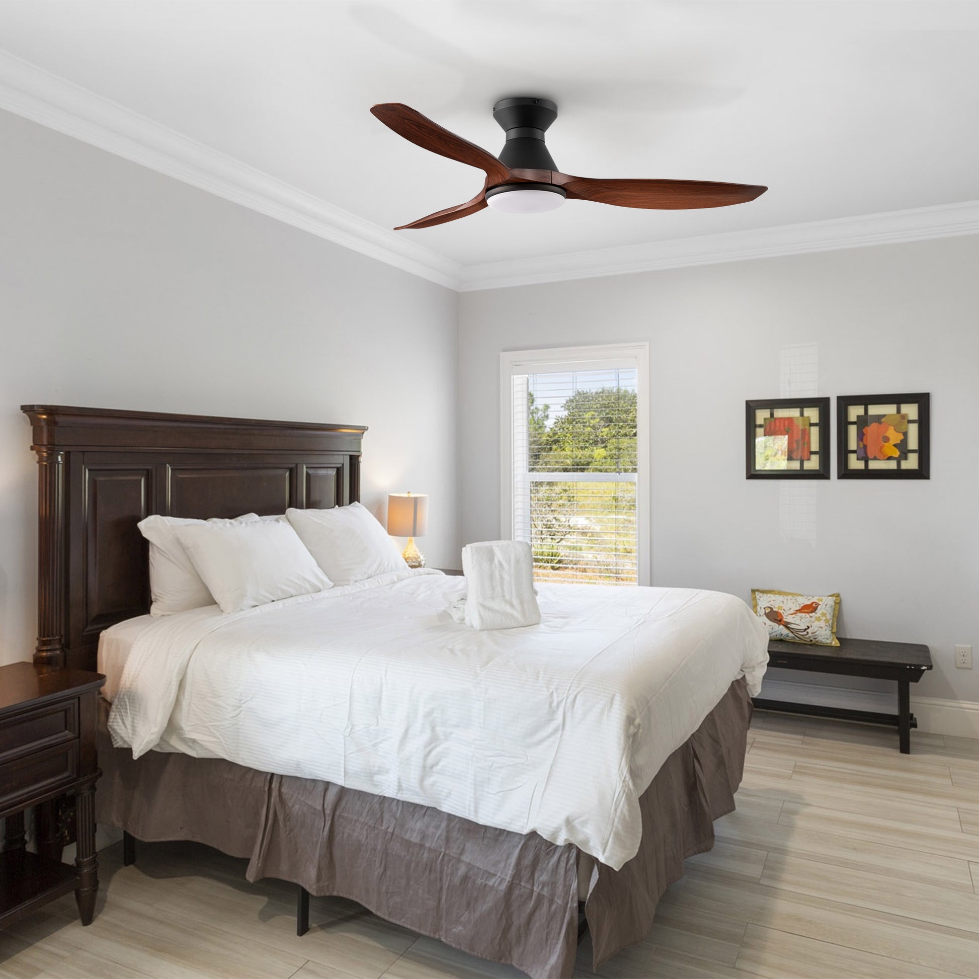 This Merton 52'' smart ceiling fan keeps your space cool, bright, and stylish. Its modern design is perfect for your indoor or outdoor living spaces. This Wi-Fi smart ceiling fan is a simple design, uses elegant and durable highly-compressed ABS blades, and has an integrated 4000K LED daylight. The fan features Remote control, Wi-Fi apps, Siri Shortcuts, and Voice control technology (compatible with Amazon Alexa and Google Home Assistant) to set fan preferences.