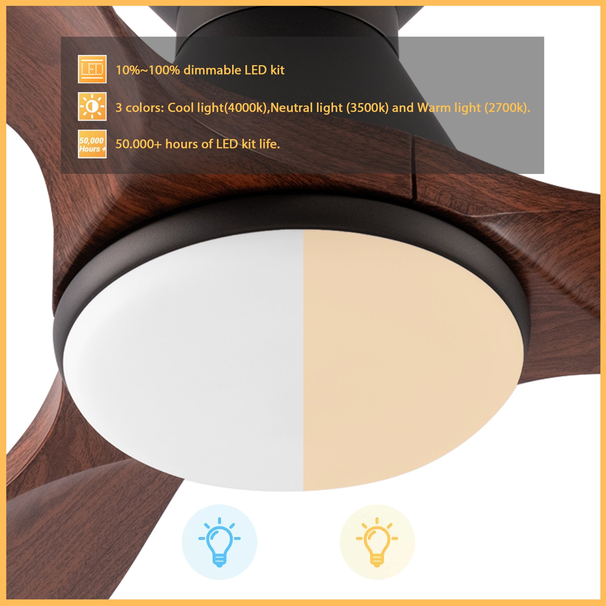 - Includes integrated LED light kit with warm light and cool light, it offers lower energy consumption and a longer life span.