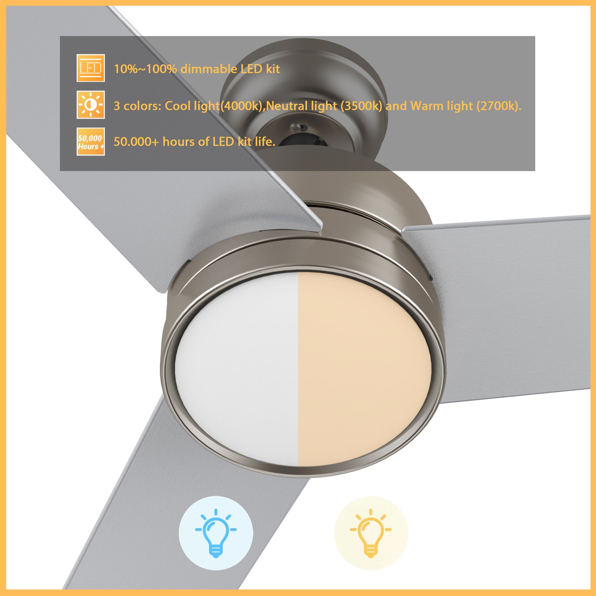 - Includes integrated LED light kit with warm light and cool light, it offers lower energy consumption and a longer life span